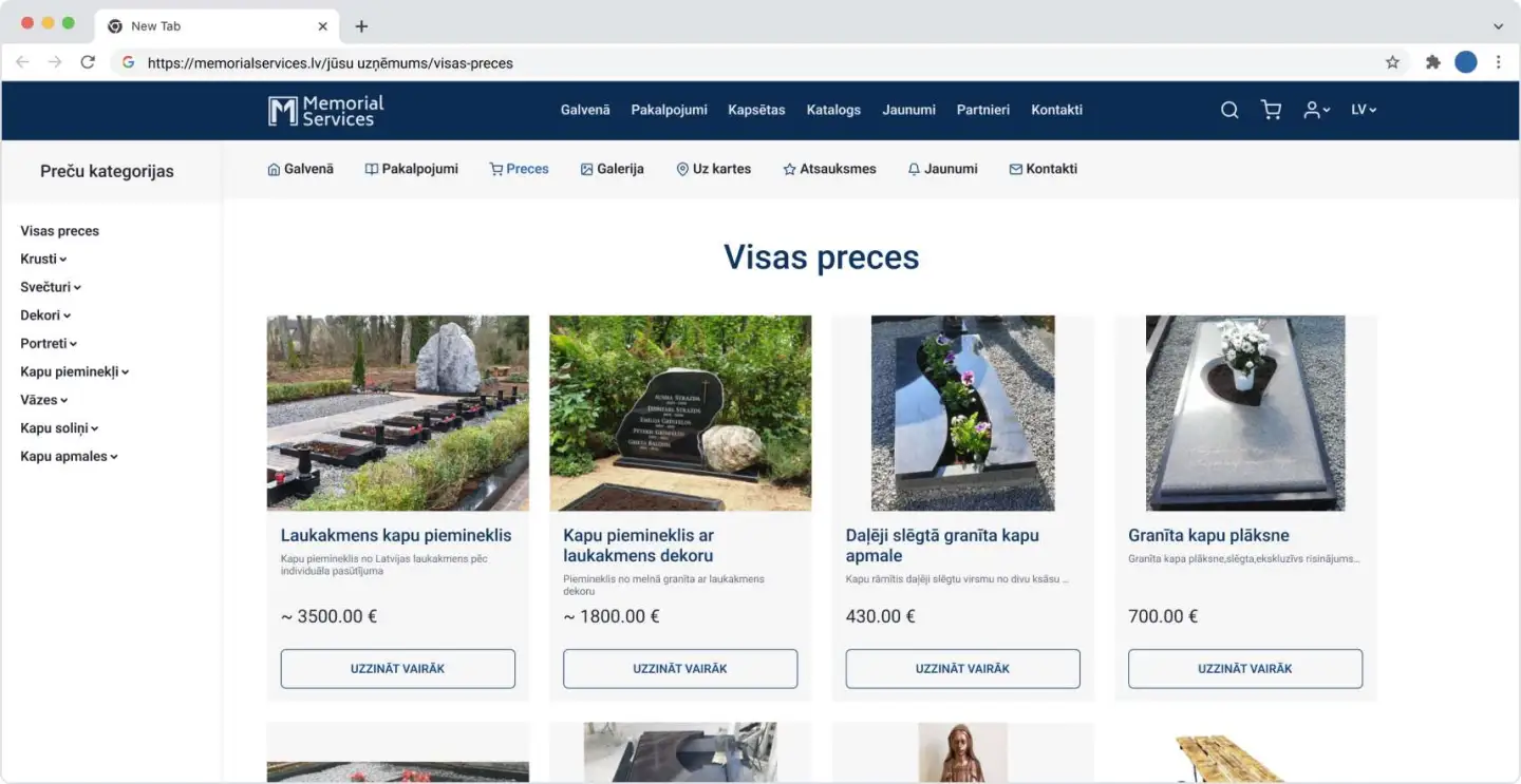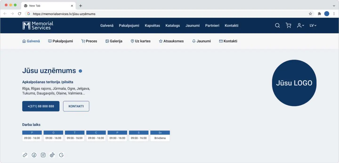 Memorial Services provides you with a complete set of modern tools that help your company to establish leadership positions in your city, region, or even throughout Latvia in your service sector.
