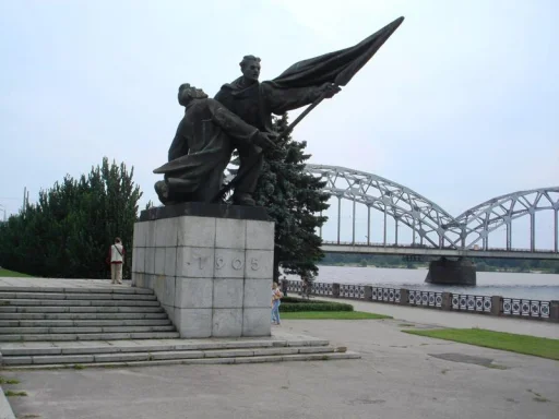 Piemineklis 1905. gada cīnītājiem atrodas 11. Novembra krastmalā. Pieminekļa autori ir tēlnieks A. Terpilovskis un arhitekte K. Plūksne. Atklāts 1960. gadā. Piemineklis ir divfigūru kompozīcija – jauns cīnītājs, kas no ievainotā biedra rokām izņēmis karogu nes to tālāk. Veidots bronzā un granītā. Piemineklis uzstādīts vietā, kur 1905. gada 13. janvārī tika apšauti strādnieku demonstrācijas dalībnieki, nogalinot vairāk kā 70 cilvēkus.